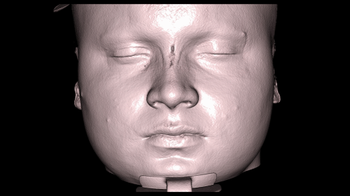 - By lowering the opacity of the skin layer, we can precisely identify the distribution of fat pads and the development of the masseter (jaw) muscle over the bone.